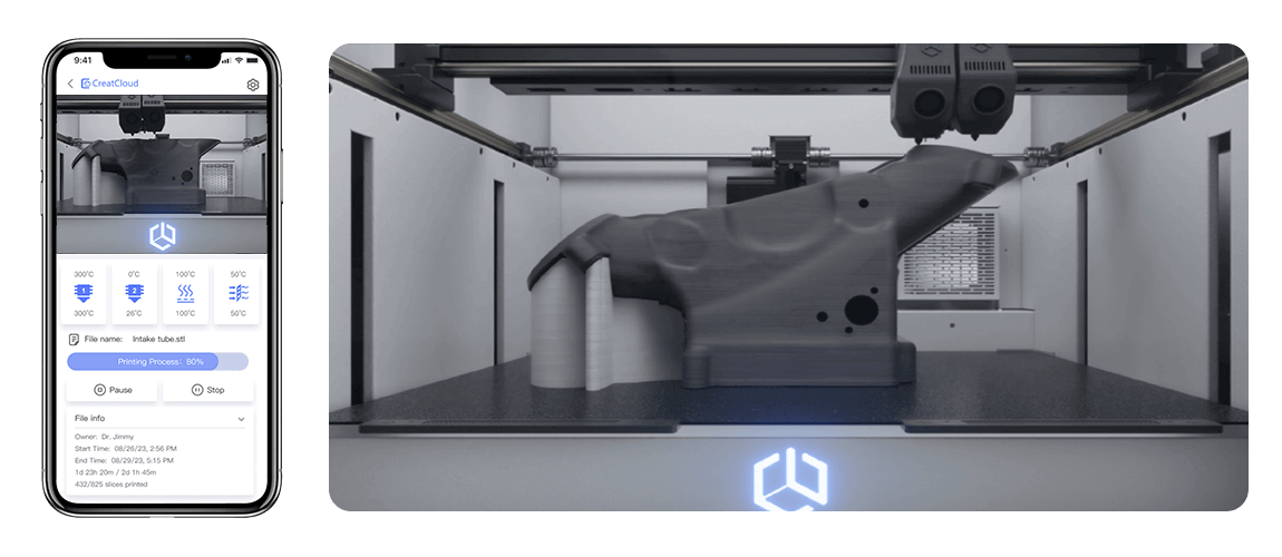 Industrijski 3D pisač pametne visokobrzinske izvedbe s radnim volumenom od 1 kubnog metra za dijelove u punoj veličini, alate i funkcionalne prototipove. Uz kalibraciju potpomognutu umjetnom inteligencijom, automatski sustav s dvostrukom mlaznicom, industrijsku komoru zagrijanu na 80 °C i masivnu čeličnu monokok konstrukciju, osigurava ponovljivu industrijsku kvalitetu — pouzdano u 24/7 radu.
