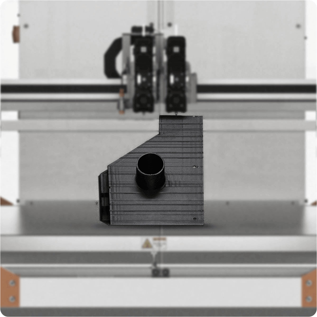 Regulirana grijana komora smanjuje toplinska naprezanja, poboljšava prianjanje slojeva i sprječava pucanje ili deformacije kod tehničkih plastika. Time se osiguravaju stalno ponovljivi rezultati čak i kod zahtjevnih materijala.