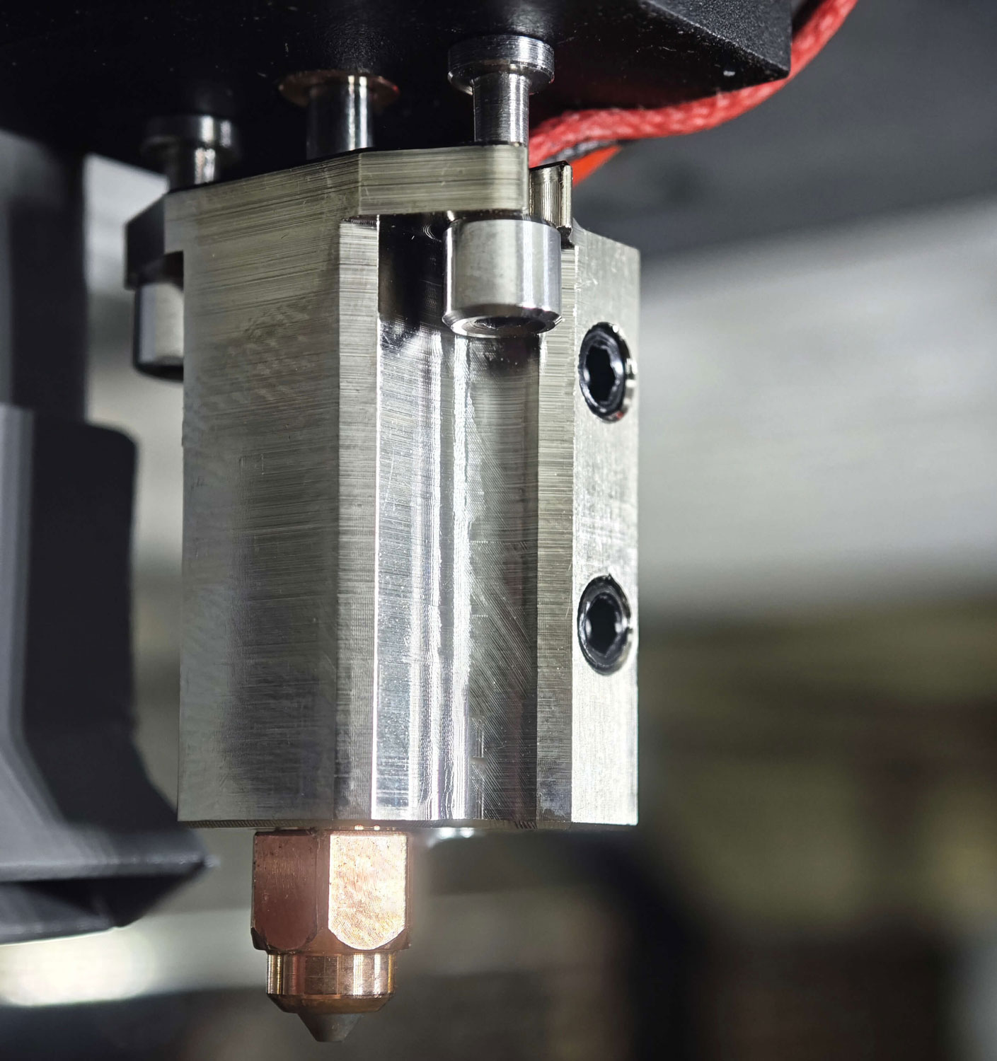 Dvostruki ekstruder od silicijskog karbida konstruiran je za ekstremne kontinuirane temperature, vodeno hlađen i može se zamijeniti u roku od 30 sekundi. Osigurava maksimalnu procesnu stabilnost pri ispisu PEEK-a, PEI-a, UltraPA-CF-a i drugih visokoučinkovitih materijala.