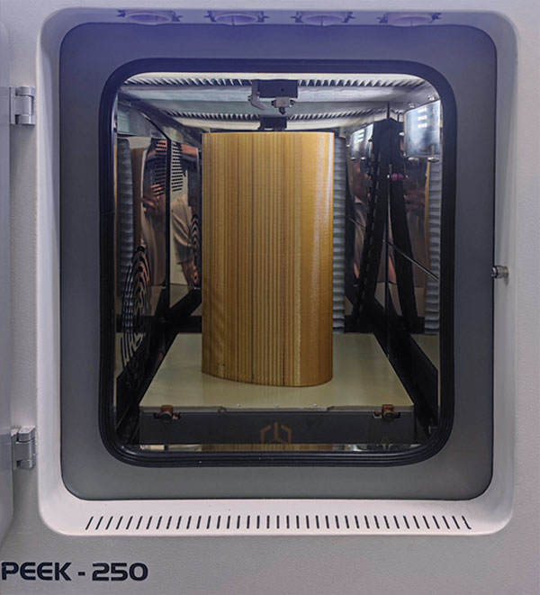 S radnim prostorom od 250 × 250 × 300 mm, potpuno zatvorenom grijanom komorom, zračnim i vodenim hlađenjem, izravnim pogonom ekstrudera i komponentama otpornima na visoke temperature, PEEK-250 je profesionalni sustav za zahtjevnu preradu polimera. Aktivno hlađenje vrata, zrakoplovna izolacija i visokoprecizna mehanika omogućuju temperaturu komore od 180–200 °C bez zagrijavanja vanjske površine – idealno za funkcionalne PEEK dijelove, PEI strukturne komponente i industrijske primjene pri visokim temperaturama.