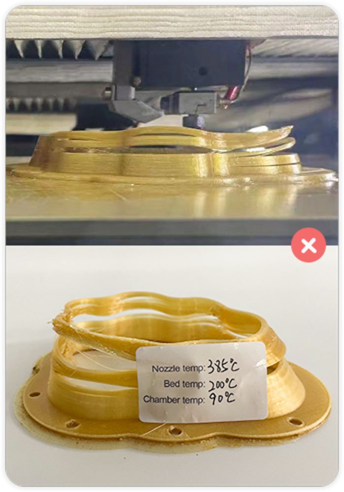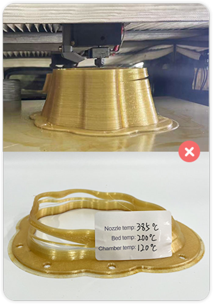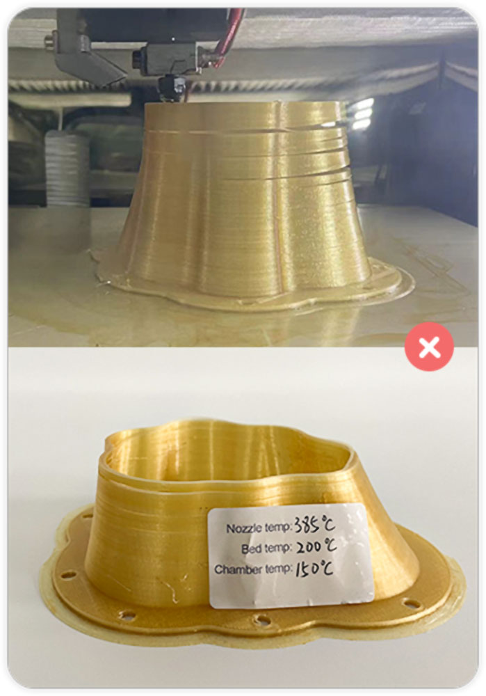 | Filamentkompatibilität | Technische Kunststoffe: PLA, ABS, ASA, PC, Nylon, PETG, PVDF, Carbon Fiber Hochtemperaturmaterialien: PET-CF, PET-GF, UltraPA, UltraPA-GF, UltraPA-CF, PPS UUltrahochleistungsmaterialien: PEI (ULTEM™ Full line), PEEK, PEEK-CF, PEEK-GF, PEKK etc. |